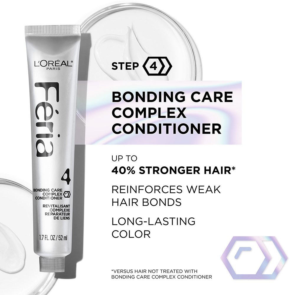 Feria’s Bonding Care Complex Conditioner helps repair strength of weak hair bonds, keeping hair strong and healthy for multi-dimensional color vibrancy.