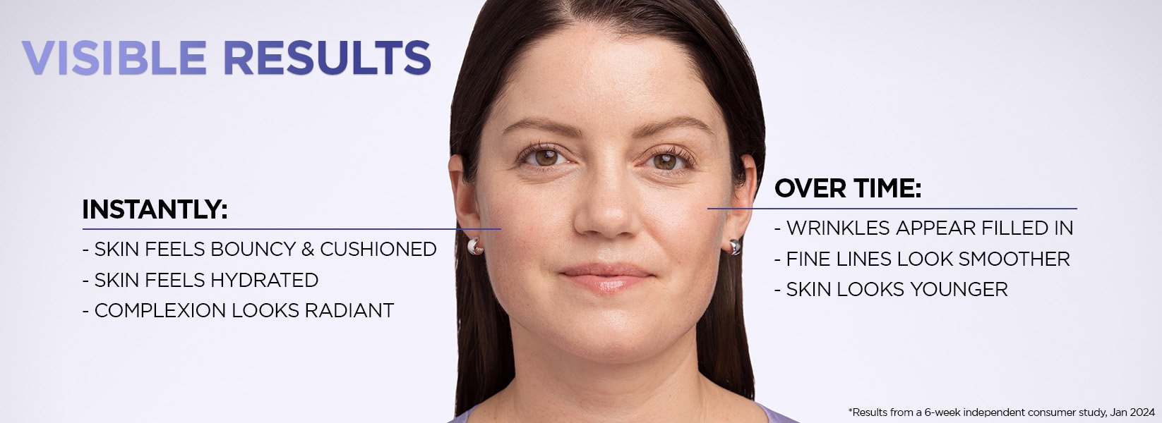 • Wrinkles appear more filled in, 9 out of 10 women agree skin feels bouncy